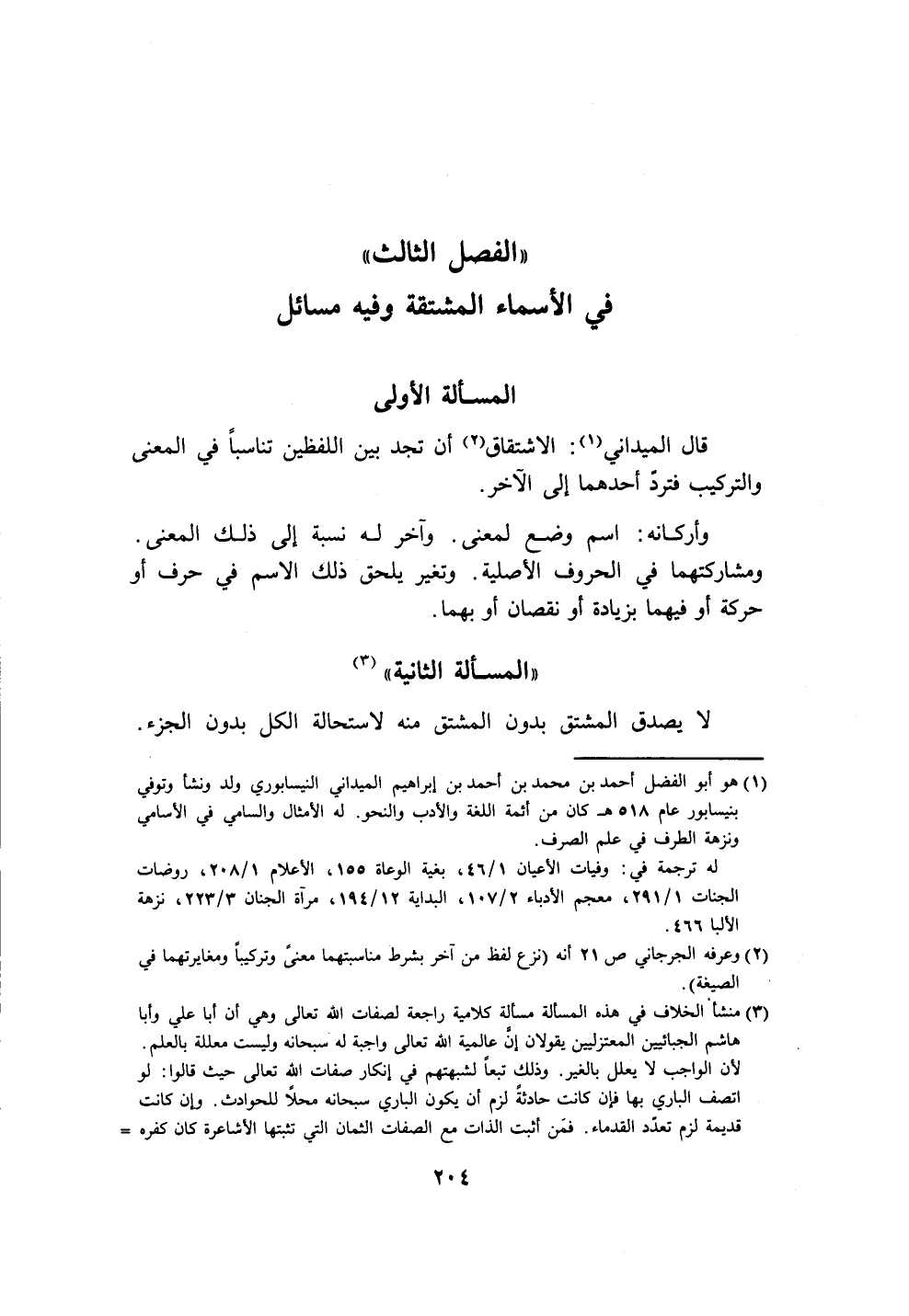 " الفصل الثالث" في الأسماء المشتقة وفيه مسائل