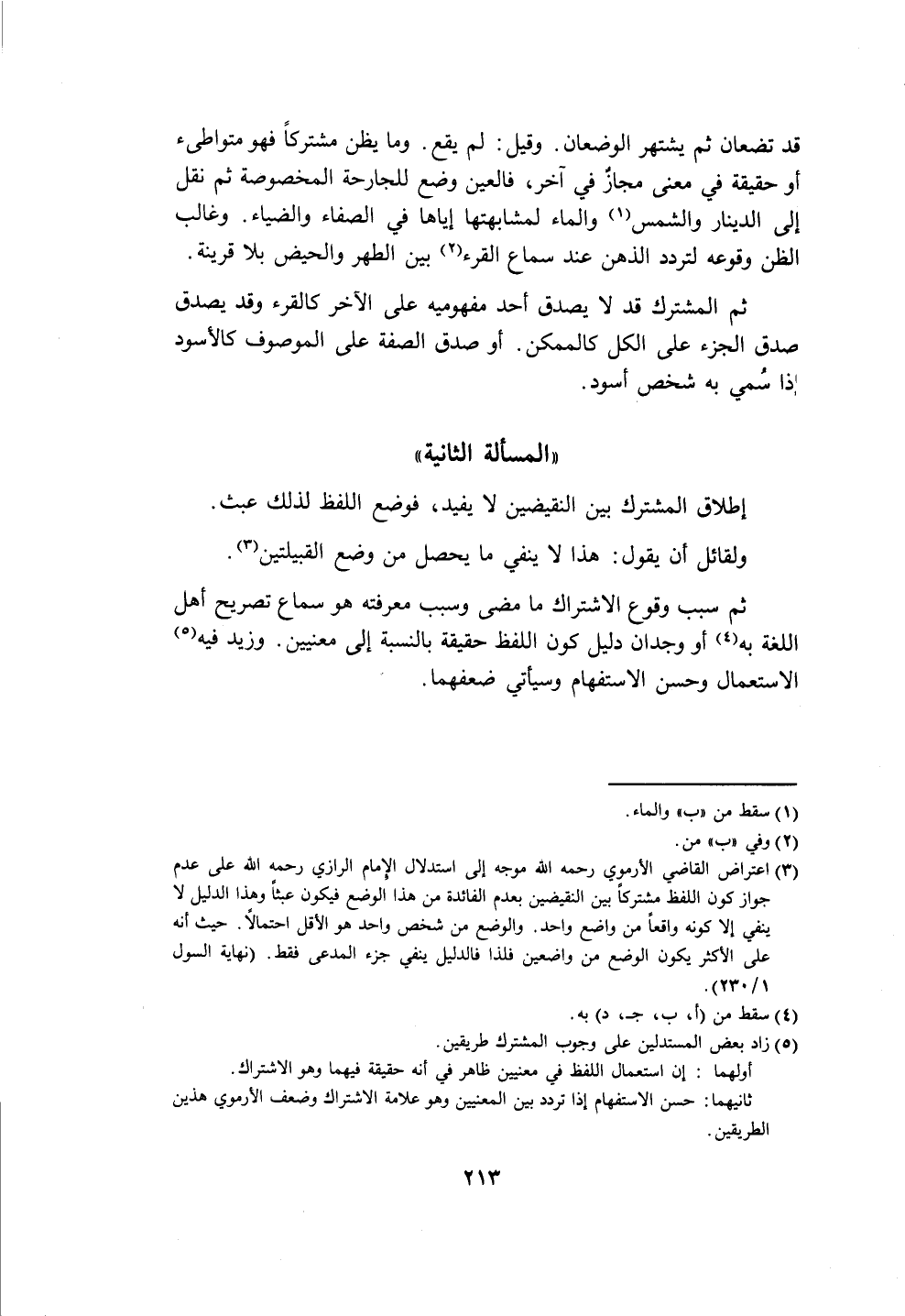 ثانيهما: حسن الاستفهام إذا تردد بين المعنيين وهو علامة الاشتراك وضعف الأرموي هذين الطريقين.