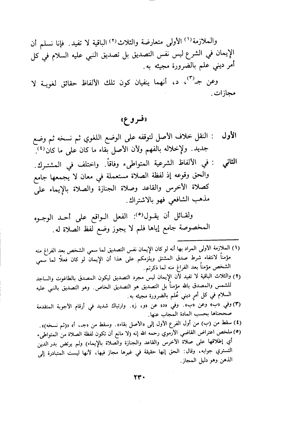 (٥) ملخص اعتراض القاضي الأرموي رحمه الله إنه (لا مانع أن تكون لفظة الصلاة من المتواطئ أي إطلاقها على صلاة الأخرس والقاعد والجنازة والصلاة بالإِيماء) ولم يرتض بدر الدين التستري جوابه، وقال: الحق إنها حقيقة في غيرها مجاز فيها، لأنها ليست المتبادرة إلى الذهن وهو دليل المجاز.