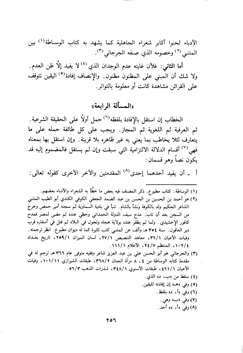 (٣) والجرجاني هو أبو الحسن علي بن عبد العزيز شاعر وفقيه متوفى عام ٣٦٦ هـ ترجم له في مقدمة كتابه الوساطة من ٤ - ٨ مرآة الجنان ٢/ ٣٦٨، طبقات الشيرازي ١١/ ١٠١، وفيات