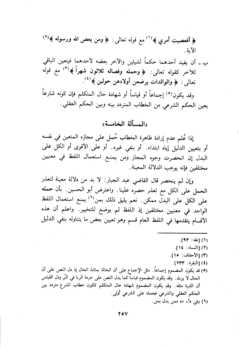 " المسألة الخامسة"