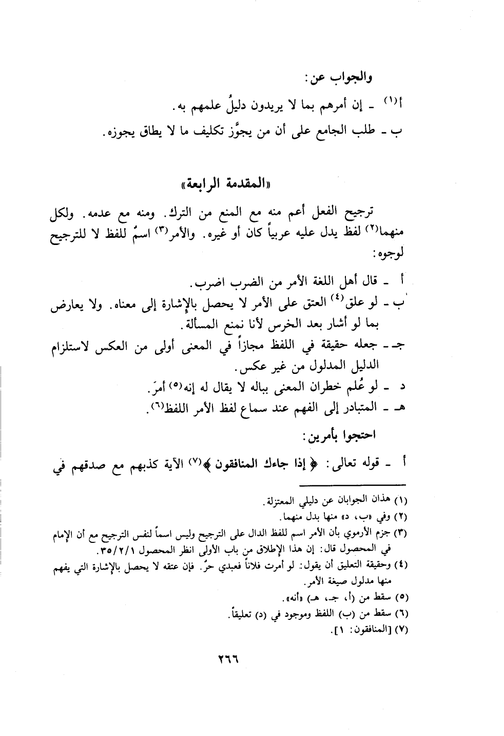 ترجيح الفعل أعم منه مع المنع من الترك. ومنه مع عدمه. ولكل منهما (٢) لفظ يدل عليه عربيًا كان أو غيره. والأمر (٣) اسمٌ للفظ لا للترجيح لوجوه: