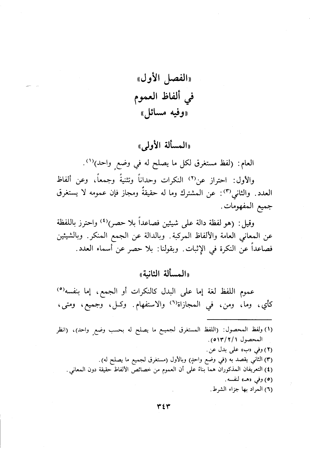 " الفصل الأول " في ألفاظ العموم "وفيه مسائل"