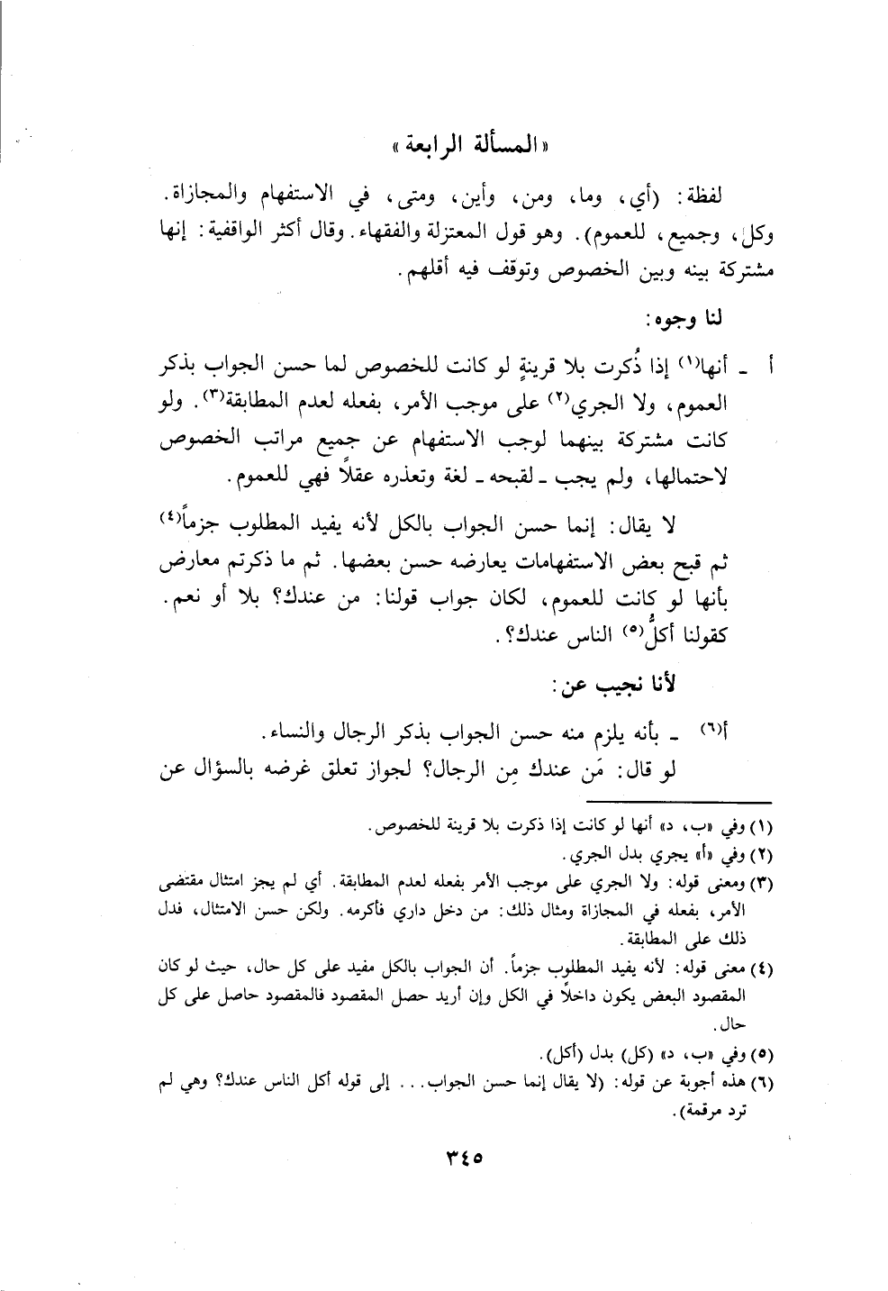 " المسألة الرابعة "