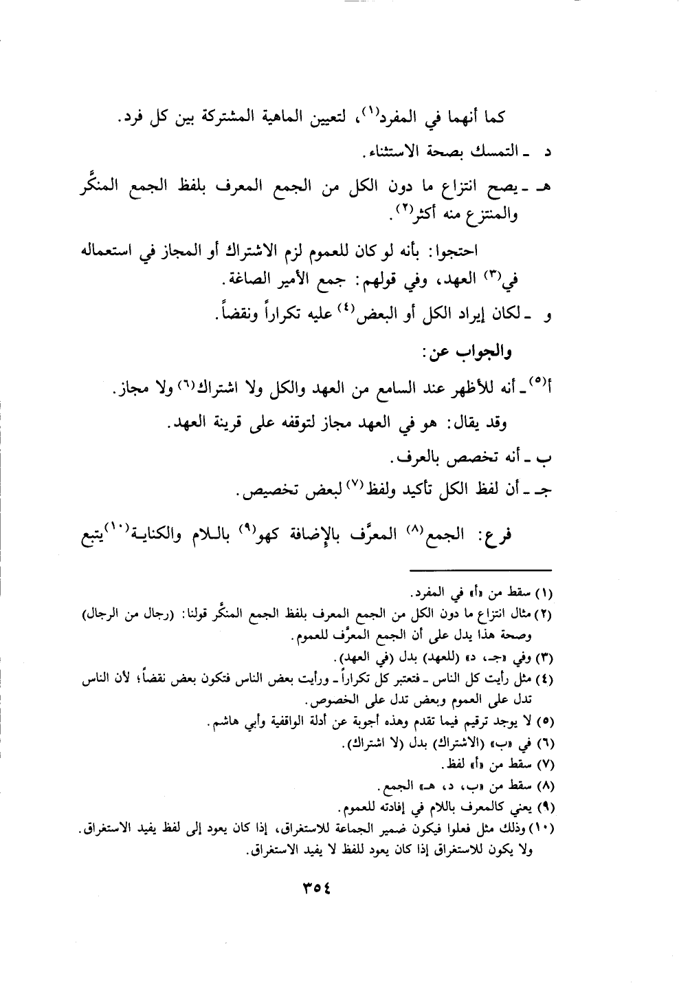 (١٠) وذلك مثل فعلوا فيكون ضمير الجماعة للاستغراق، إذا كان يعود إلى لفظ يفيد الاستغراق.