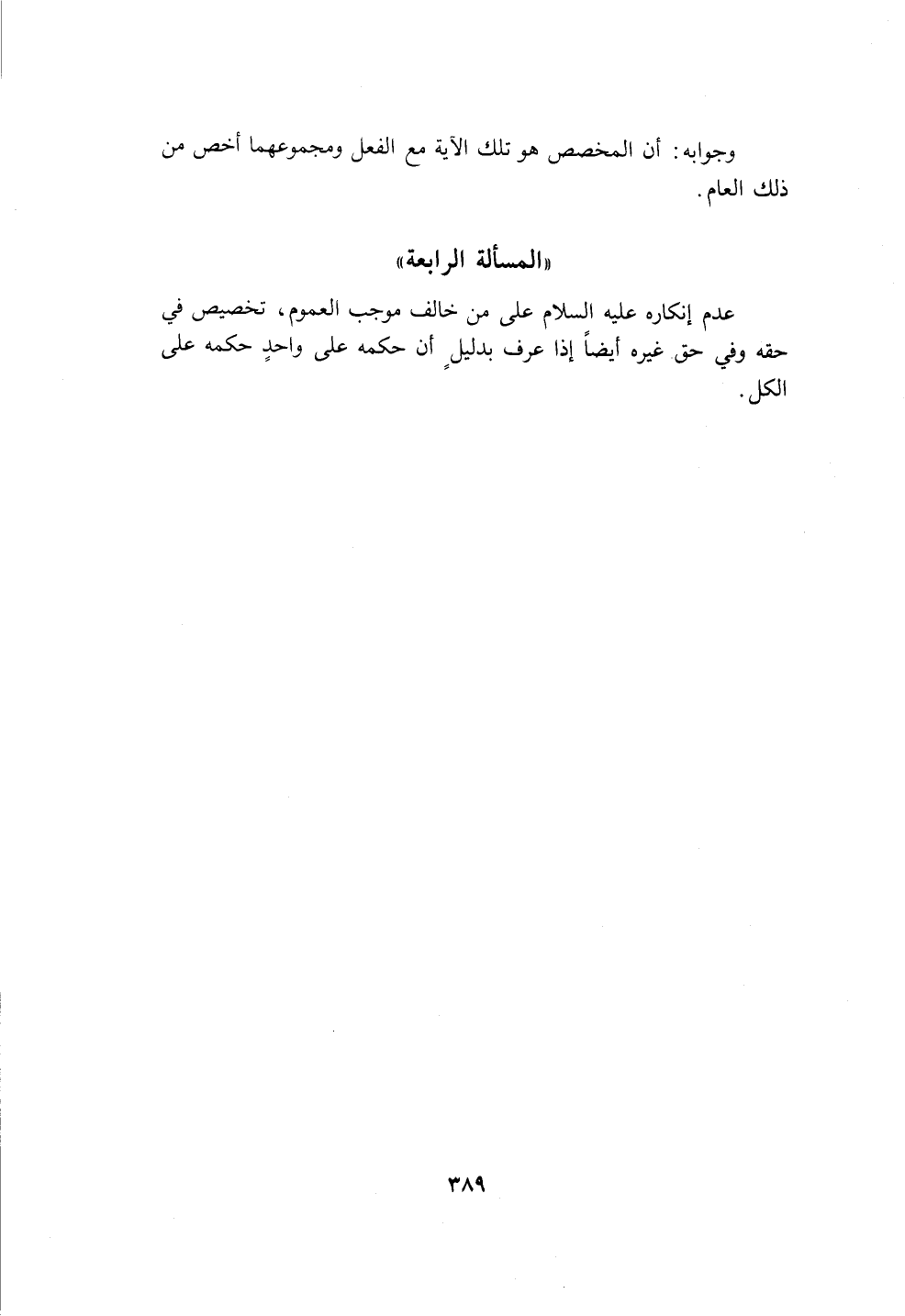 عدم إنكاره عليه السلام على من خالف موجب العموم، تخصيص في حقه وفي حق غيره أيضاً إذا عرف بدليلٍ أن حكمه على واحدٍ حكمه على الكل.