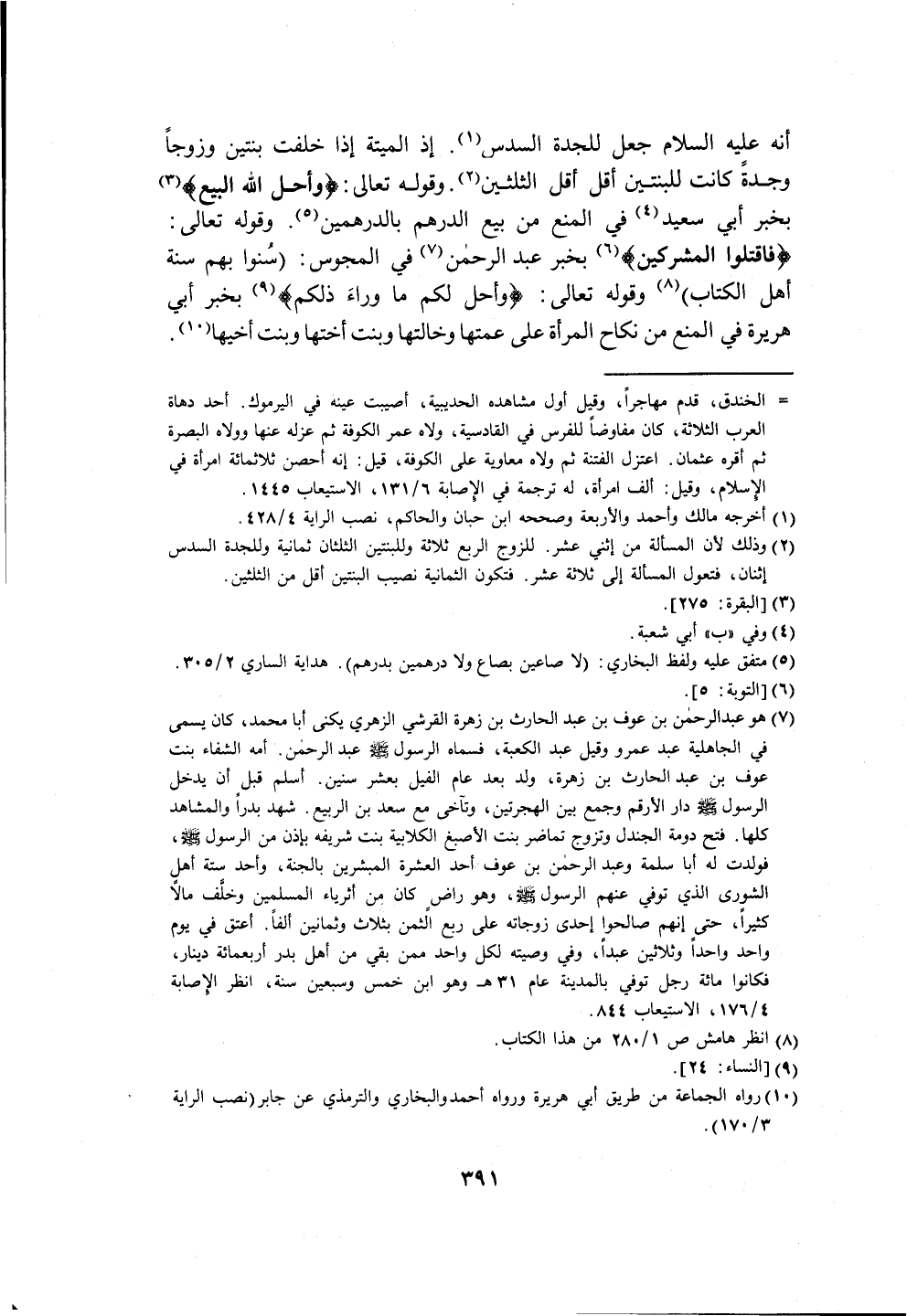 (١٠) رواه الجماعة من طريق أبي هريرة ورواه أحمد والبخاري والترمذي عن جابر (نصب الراية ٣/ ١٧٠).