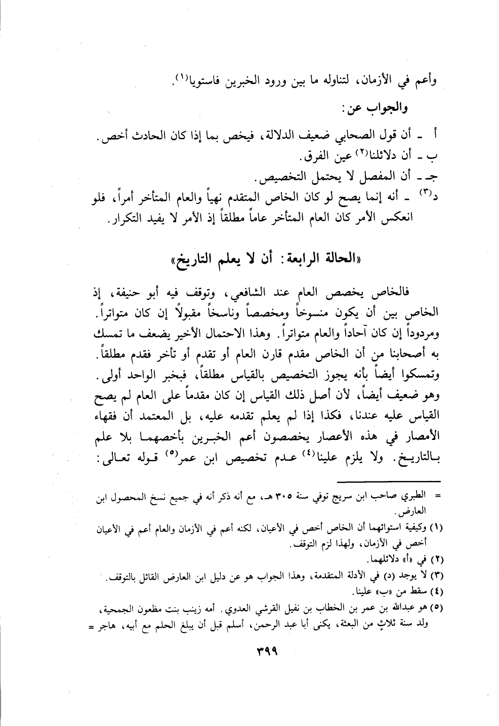 (٣) لا يوجد (د) في الأدلة المتقدمة، وهذا الجواب هو عن دليل ابن العارض القائل بالتوقف.