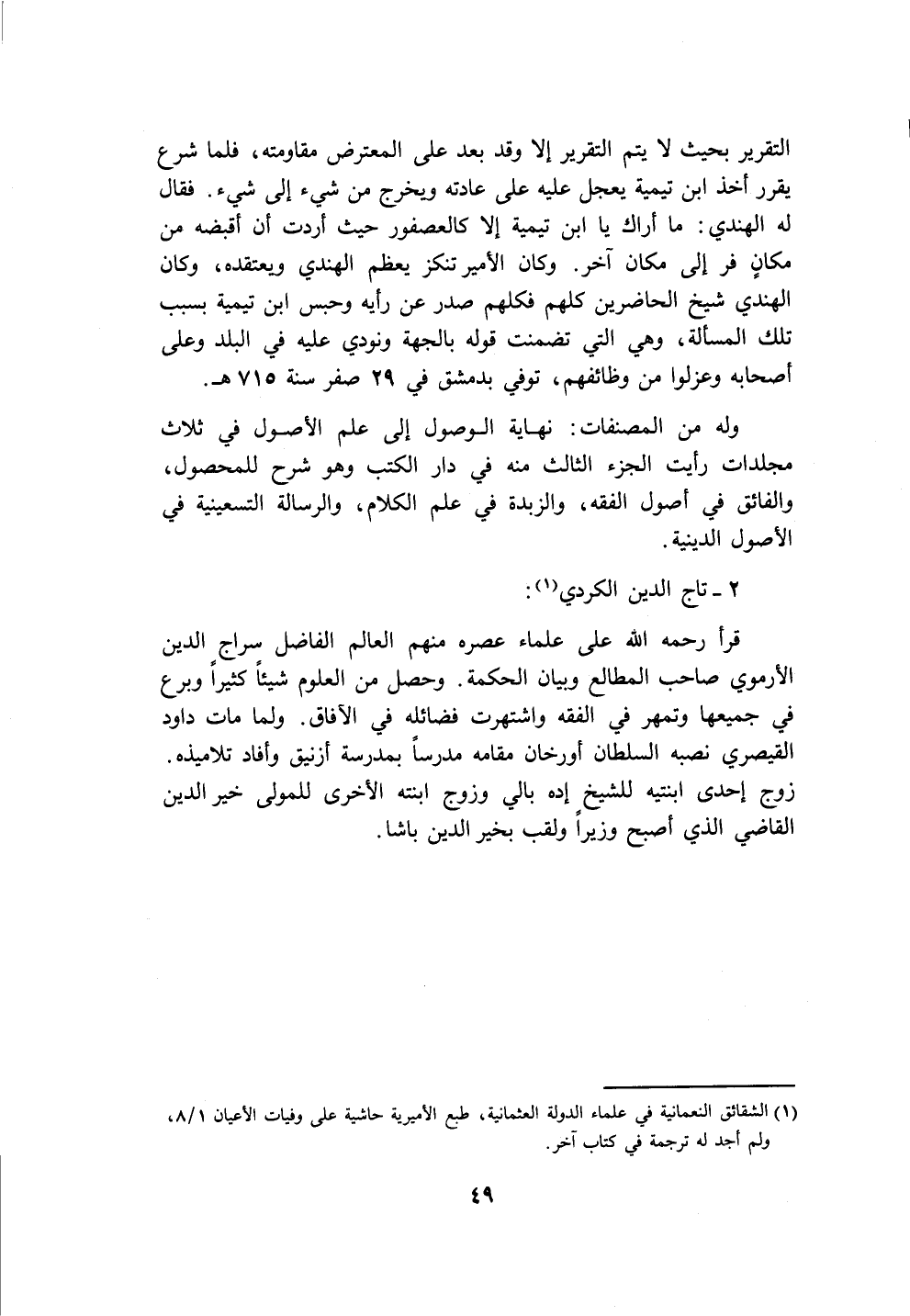 (١) الشقائق النعمانية في علماء الدولة العثمانية، طبع الأميرية حاشية على وفيات الأعيان ١/ ٨،