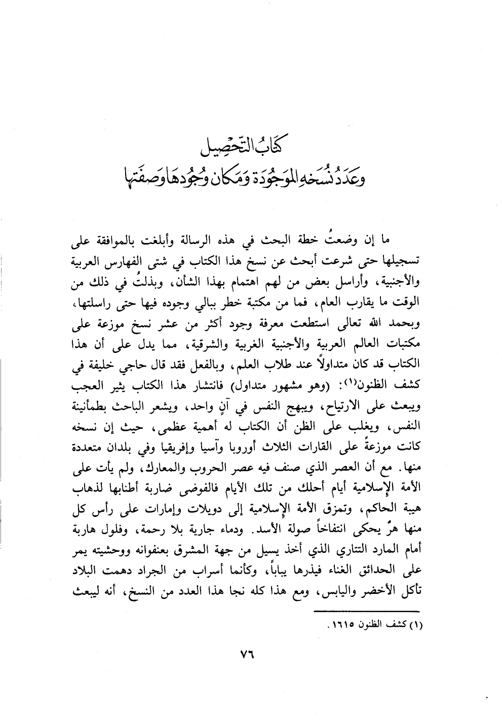 كتَابُ التّحْصِيل وعَدَدُ نُسُخهَ الموَجُوَدَة وَمَكان وُجُودهَا وَصفَتها
