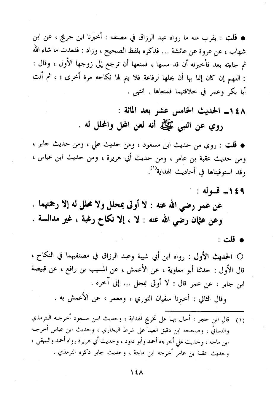 الحَدِيث الأول رَوَاهُ ابْن أبي شيبَة وَعبد الرَّزَّاق فِي مصنفيهما فِي النِّكَاح قَالَ الأول حَدثنَا أَبُو مُعَاوِيَة عَن الْأَعْمَش عَن الْمسيب بن رَافع عَن قبيصَة ابْن جَابر عَن عمر قَالَ لَا أُوتَى بِمحل ... إِلَى آخِره