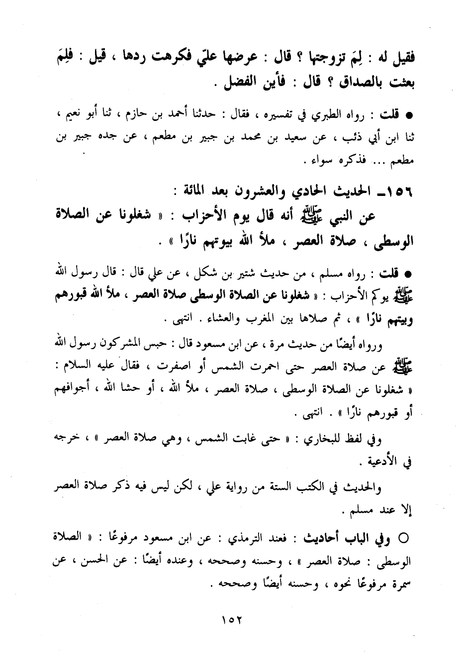 عَن النَّبِي صَلَّى اللَّهُ عَلَيْهِ وَسَلَّم َ أَنه قَالَ يَوْم الْأَحْزَاب شغلونا عَن الصَّلَاة الْوُسْطَى صَلَاة الْعَصْر مَلأ الله بُيُوتهم نَارا