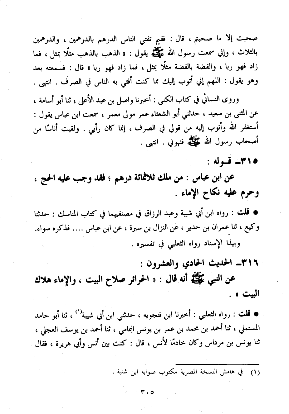 وَرَوَى النَّسَائِيّ فِي كتاب الكنى أخبرنَا وَاصل بن عبد الْأَعْلَى ثَنَا أَبُو أُسَامَة عَن الْمثنى بن سعيد حَدثنِي أَبُو الشعْثَاء عمر مولَى معمر سَمِعت ابْن عَبَّاس يَقُول أسْتَغْفر الله وَأَتُوب إِلَيْهِ من قولي فِي الصّرْف إِنَّمَا كَانَ رَأْيِي وَلَقِيت أُنَاسًا من أَصْحَاب رَسُول الله صَلَّى اللَّهُ عَلَيْهِ وَسَلَّم َ فنهوني انْتَهَى