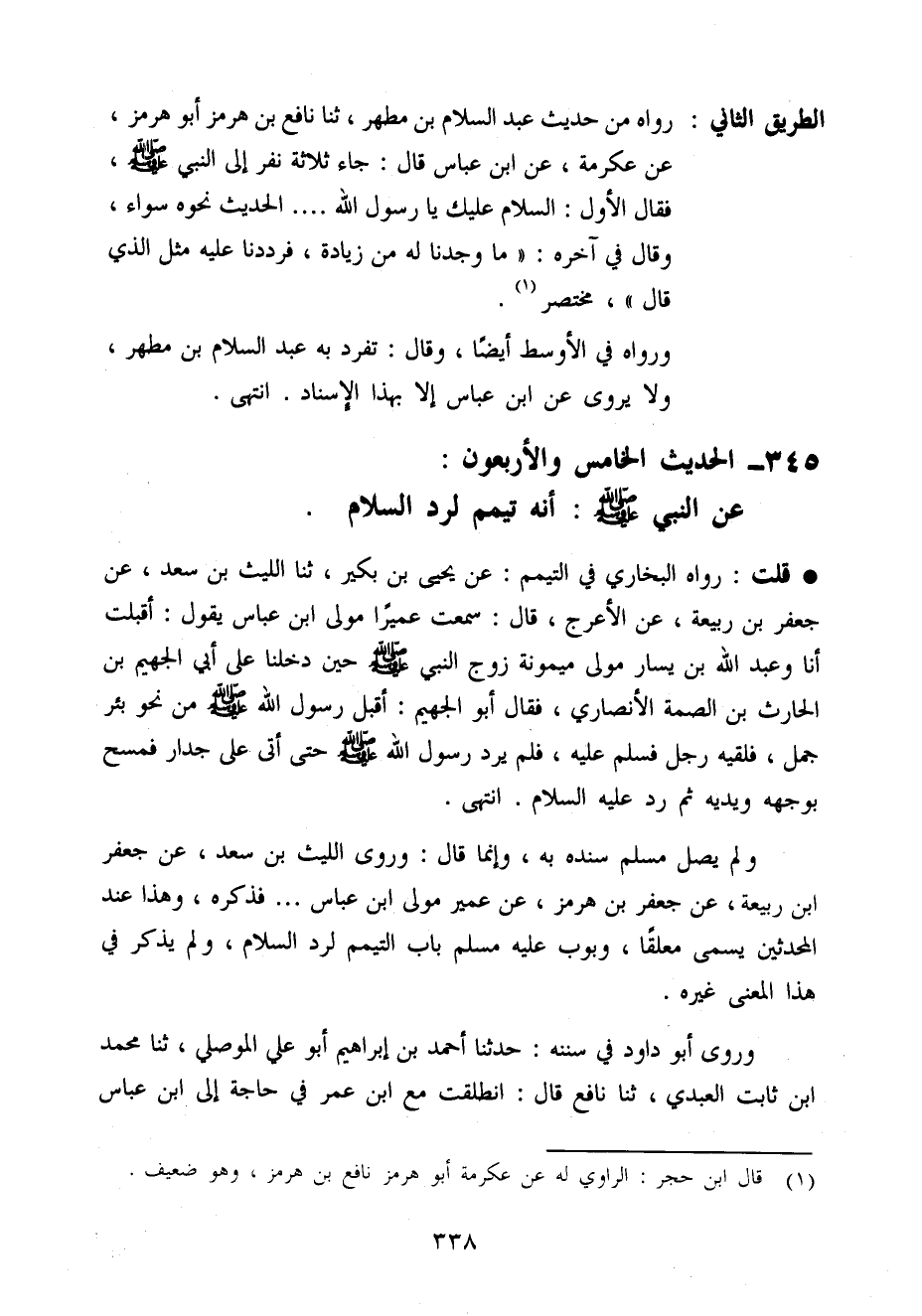 وَلم يصل مُسلم سَنَده بِهِ وَإِنَّمَا قَالَ وَرَوَى اللَّيْث بن سعد عَن جَعْفَر ابْن ربيعَة عَن جَعْفَر بن هُرْمُز عَن عُمَيْر مولَى ابْن عَبَّاس ... فَذكره وَهَذَا عِنْد الْمُحدثين يُسمى مُعَلّقا وَبَوَّبَ عَلَيْهِ مُسلم بَاب التَّيَمُّم لرد السَّلَام وَلم يذكر فِي هَذَا الْمَعْنى غَيره