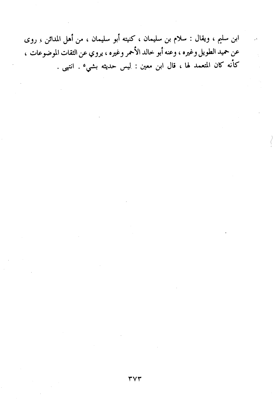 ابْن سليم وَيُقَال سَلام بن سُلَيْمَان كنيته أَبُو سُلَيْمَان من أهل الْمَدَائِن رَوَى عَن حميد الطَّوِيل وَغَيره وَعنهُ أَبُو خَالِد الْأَحْمَر وَغَيره يروي عَن الثِّقَات الموضوعات كَأَنَّهُ كَانَ الْمُتَعَمد لَهَا قَالَ ابْن معِين لَيْسَ حَدِيثه بِشَيْء انْتَهَى