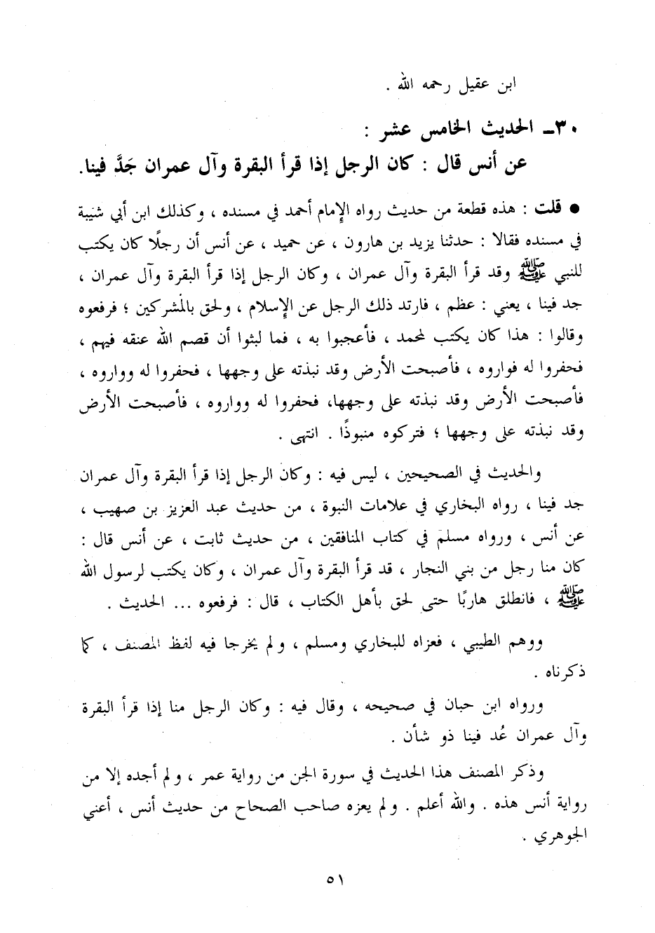 والْحَدِيث فِي الصَّحِيحَيْنِ لَيْسَ فِيهِ وَكَانَ الرجل إِذا قَرَأَ الْبَقَرَة وَآل عمرَان جد فِينَا رَوَاهُ البُخَارِيّ فِي عَلَامَات النُّبُوَّة من حَدِيث عبد الْعَزِيز بن صُهَيْب عَن أنس وَرَوَاهُ مُسلم فِي كتاب الْمُنَافِقين من حَدِيث ثَابت عَن أنس قَالَ كَانَ منا رجل من بني النجار قد قَرَأَ الْبَقَرَة وَآل عمرَان وَكَانَ يكْتب لرَسُول الله صَلَّى اللَّهُ عَلَيْهِ وَسَلَّم َ فَانْطَلق هَارِبا حَتَّى لحق بِأَهْل الْكتاب قَالَ فَرَفَعُوهُ ... الحَدِيث