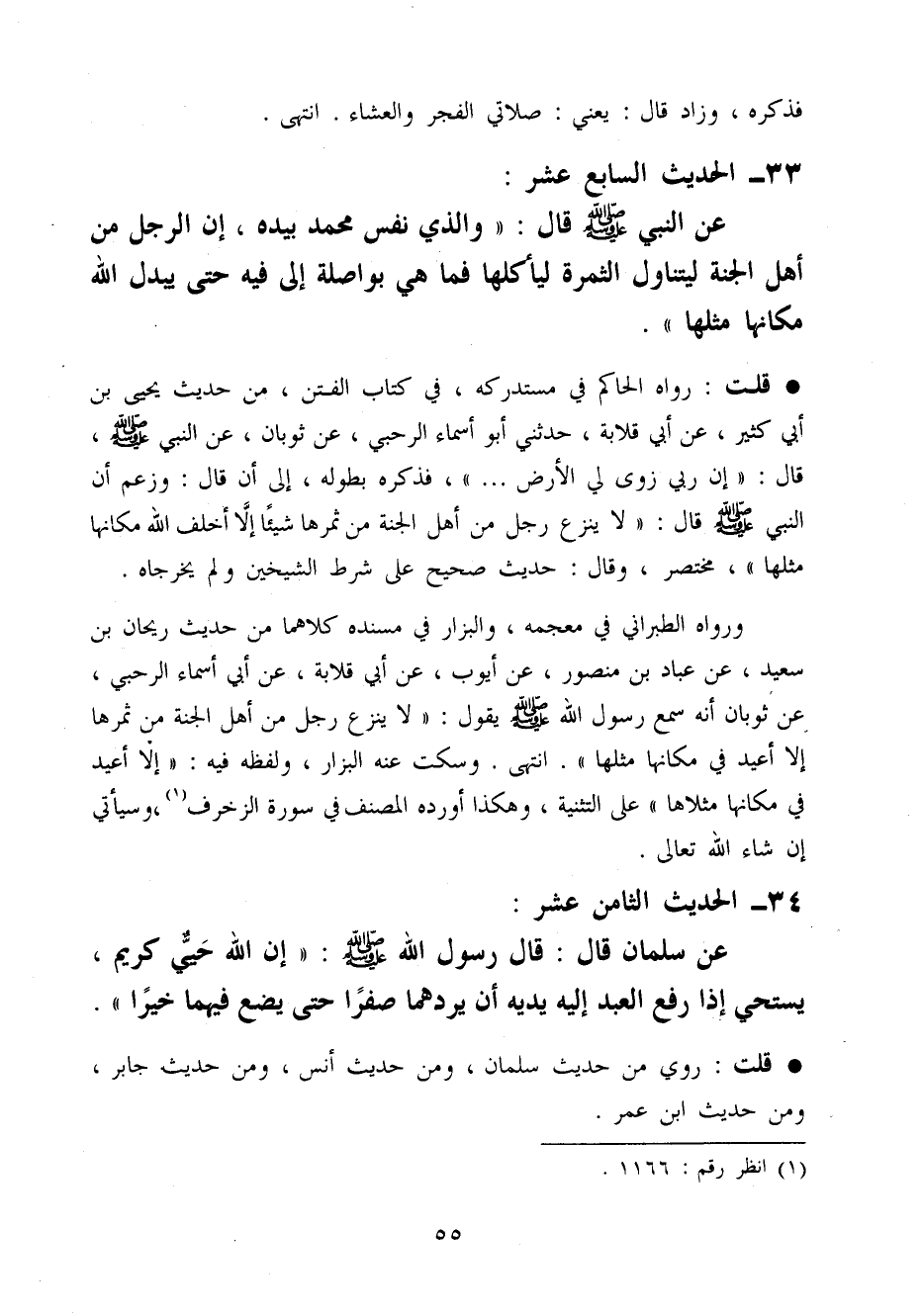 قلت رَوَاهُ الْحَاكِم فِي مُسْتَدْركه فِي كتاب الْفِتَن من حَدِيث يَحْيَى بن أبي كثير عَن أبي قلَابَة حَدثنِي أَبُو أَسمَاء الرَّحبِي عَن ثَوْبَان عَن النَّبِي صَلَّى اللَّهُ عَلَيْهِ وَسَلَّم َ قَالَ إِن رَبِّي زَوَى لي الأَرْض ... فَذكره بِطُولِهِ إِلَى أَن قَالَ وَزعم أَن النَّبِي صَلَّى اللَّهُ عَلَيْهِ وَسَلَّم َ قَالَ لَا ينْزع رجل من أهل الْجنَّة من ثَمَرهَا شَيْئا إِلَّا أخلف الله مَكَانهَا مثلهَا مُخْتَصر وَقَالَ حَدِيث صَحِيح عَلَى شَرط الشَّيْخَيْنِ وَلم يخرجَاهُ