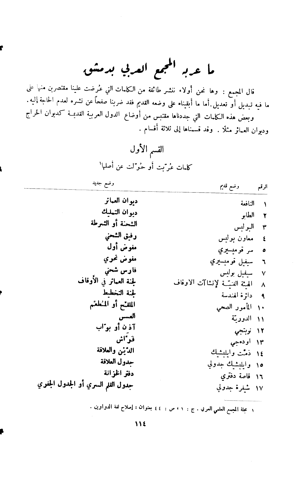 (¬1) مجلة المجمع العلمي العربي. ج: 1، ص: 44 بعنوان: إصلاح لغة الدواوين.