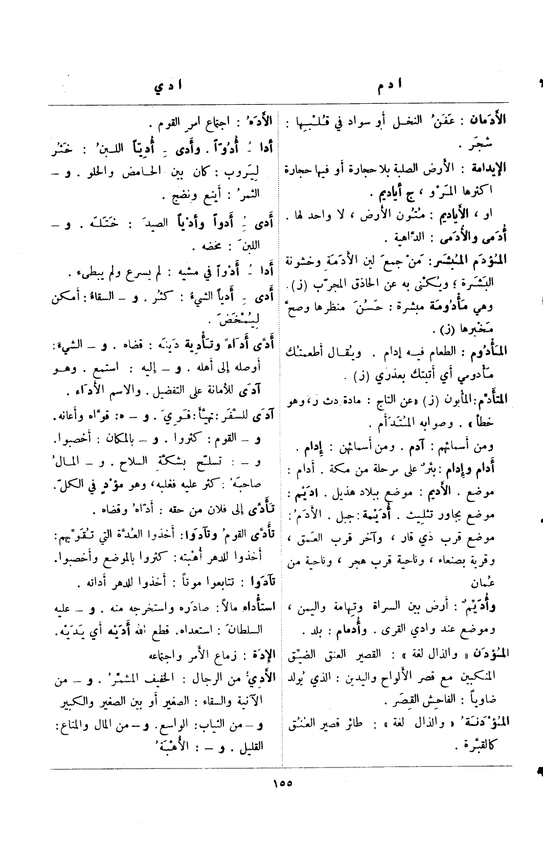 أدام وإدام: بئر على مرحلة من مكة. أدام: موضع: الأديم: موضع ببلاد هذيل. أديم: موضع يجاور تثليث. أديمة: جبل. الأدم: موضع قرب ذي قار، وآخر قرب العمق، وقرية بصنعاء، وناحية قرب هجر، وناحية من عمان.