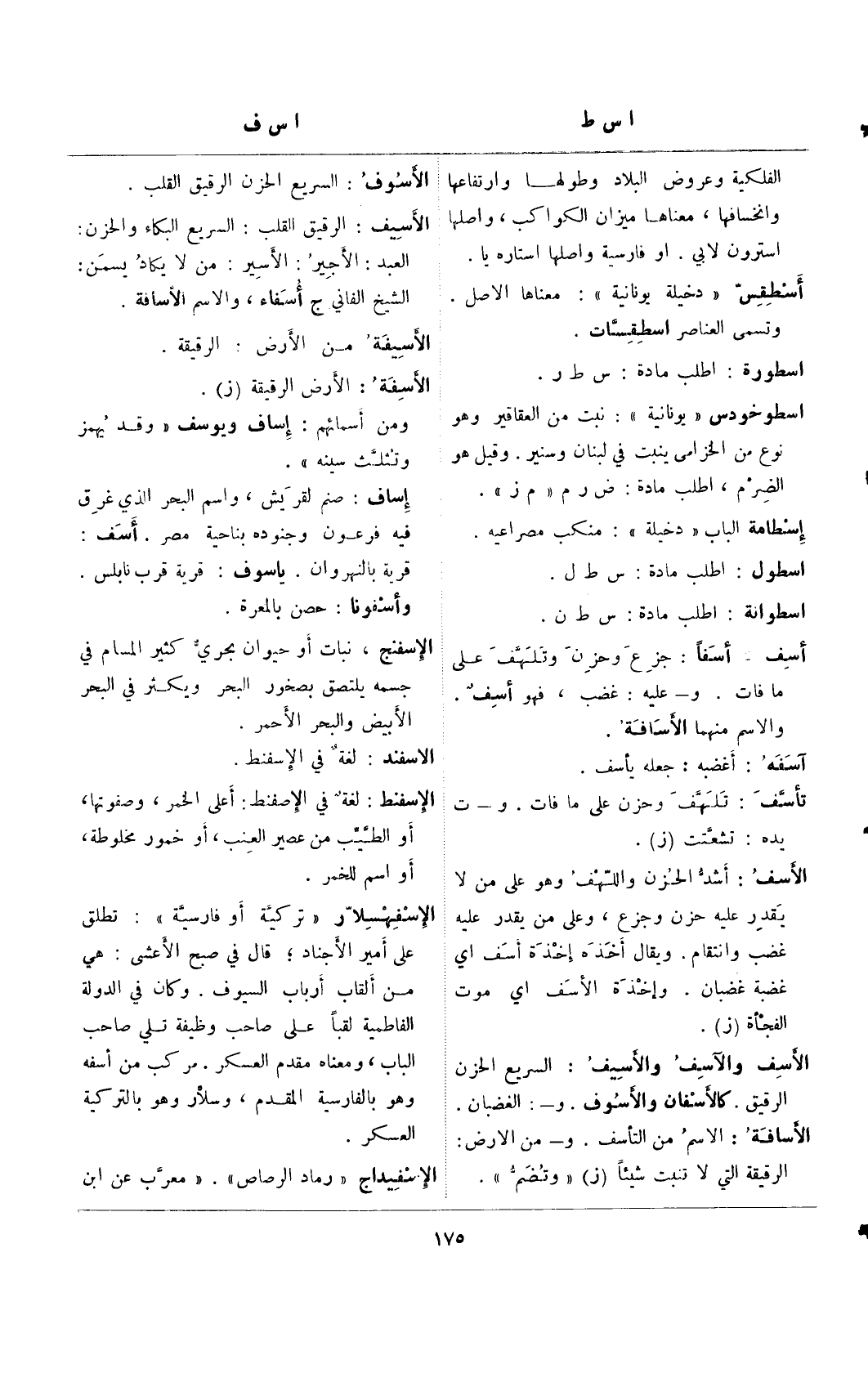 الفلكية وعروض البلاد وطولها وارتفاعها وانخسافها، معناها ميزان الكواكب، وأصلها استرون لابي. أو فارسية وأصلها أستاره يا.
