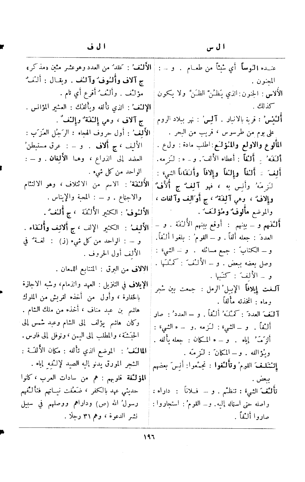 الألف: أول حروف الهجاء: الرجل العزب: الأليف، ج ألاف. و-: عرق مستبطن العضد إلى الذراع، وهما الألفان. و-: الواحد من كل شيء.