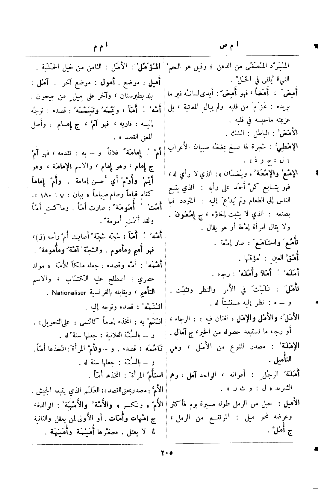 أم- إمامة فلانا و- به: تقدمه، فهو آم ج إمام، وهو إمام، والاسم الإمامة، وهو أيم وأدم أي أحسن إمامة. وأم إمامًا كقام قياما وصام صيامًا "بيان: 7: 180".