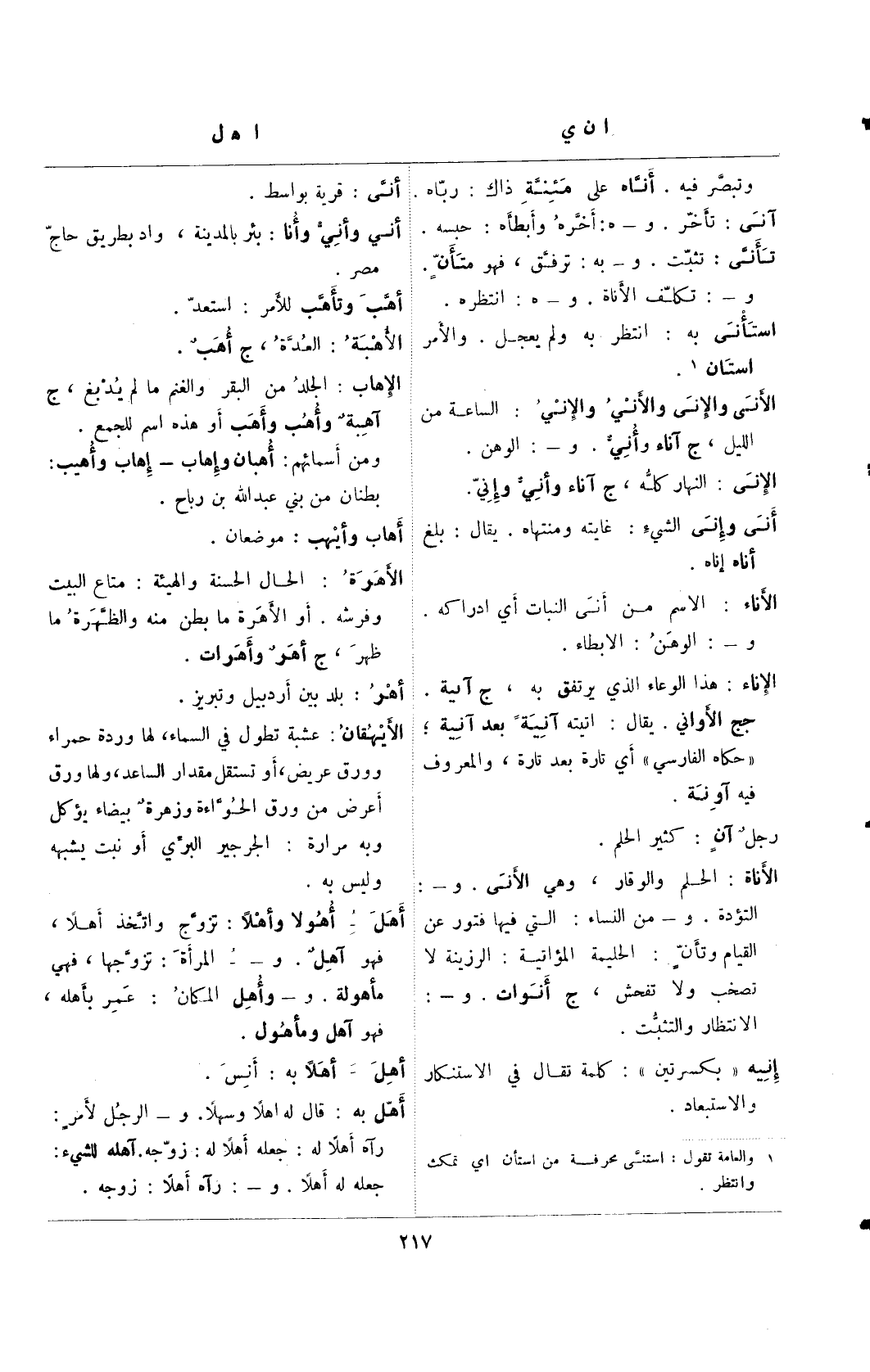 (¬1) والعامة تقول: استنى محرفة من استأن أي تمكث وانتظر.