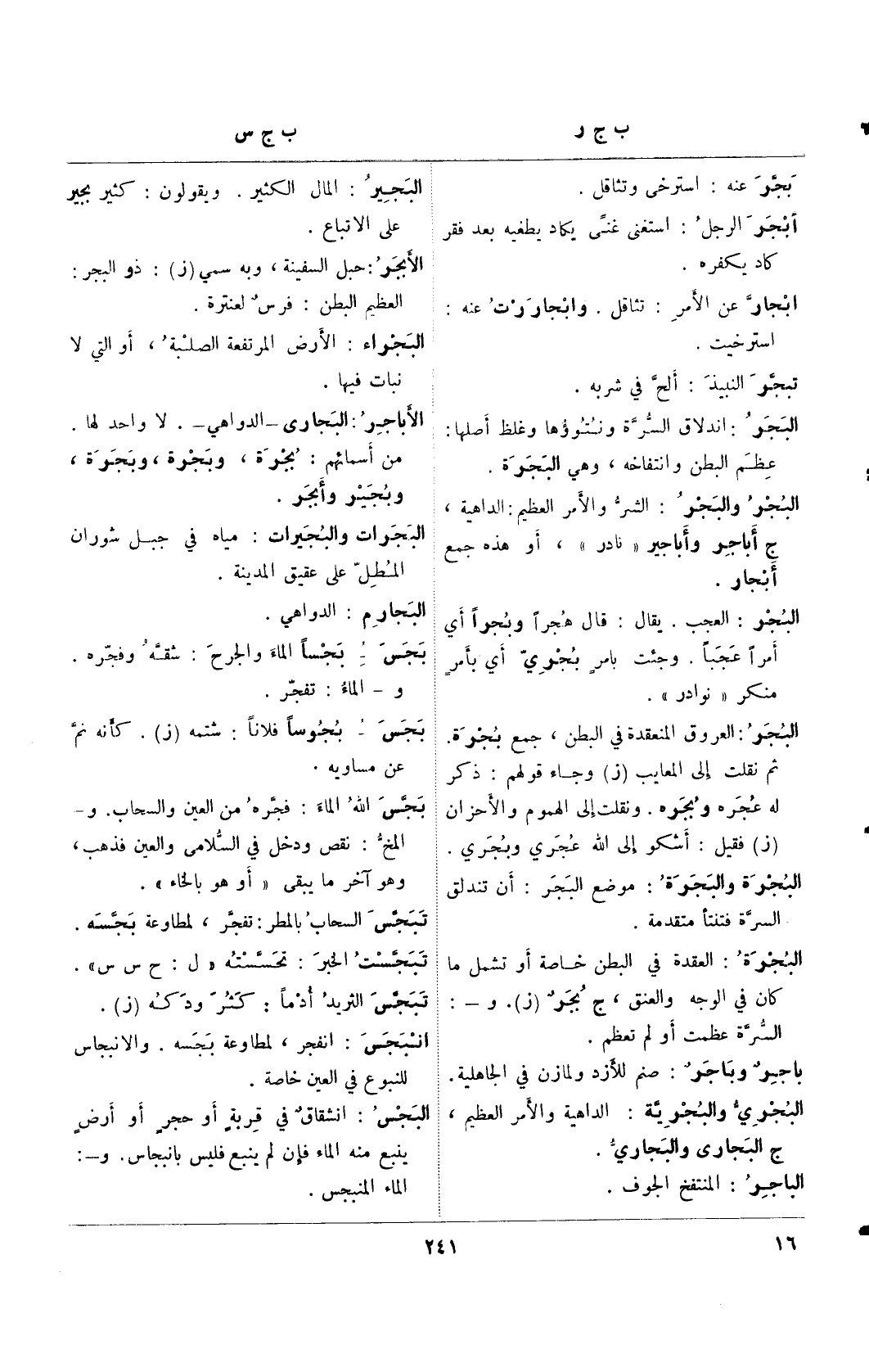 البجر والبجر: الشر والأسر العظيم: الداهية، ج أباجر وأباجير "نادر"، أو هذه جمع أبجار.
