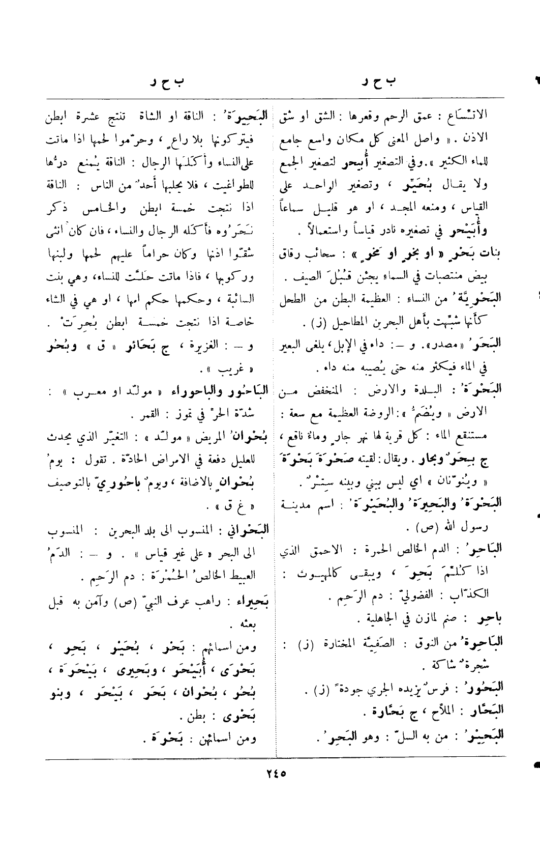 و-: الغزيرة، ج بحائر "ق" وبحر "غريب".