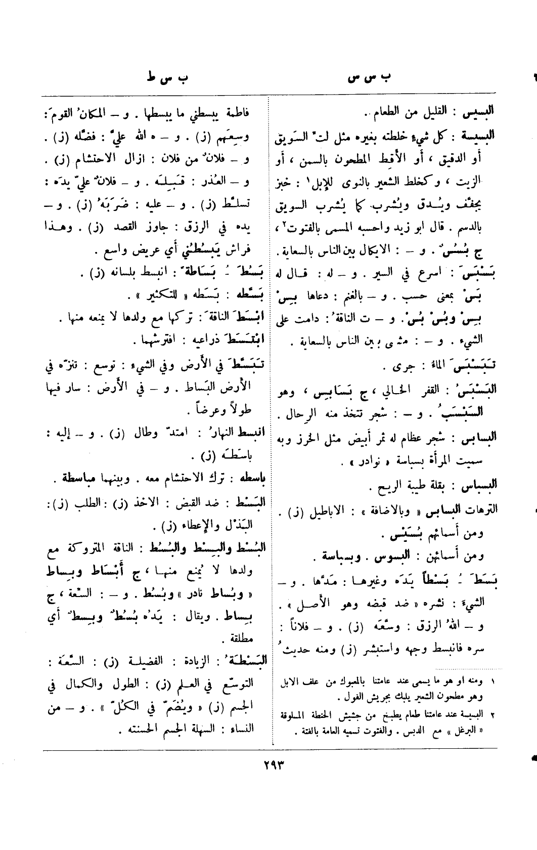 البسطة: الزيادة: الفضيلة (ز): السعة: التوسع في العلم (ز): الطول والكمال في الجسم (ز) "ويضم في الكل". و- من النساء: السهلة الجسم الحسنته.