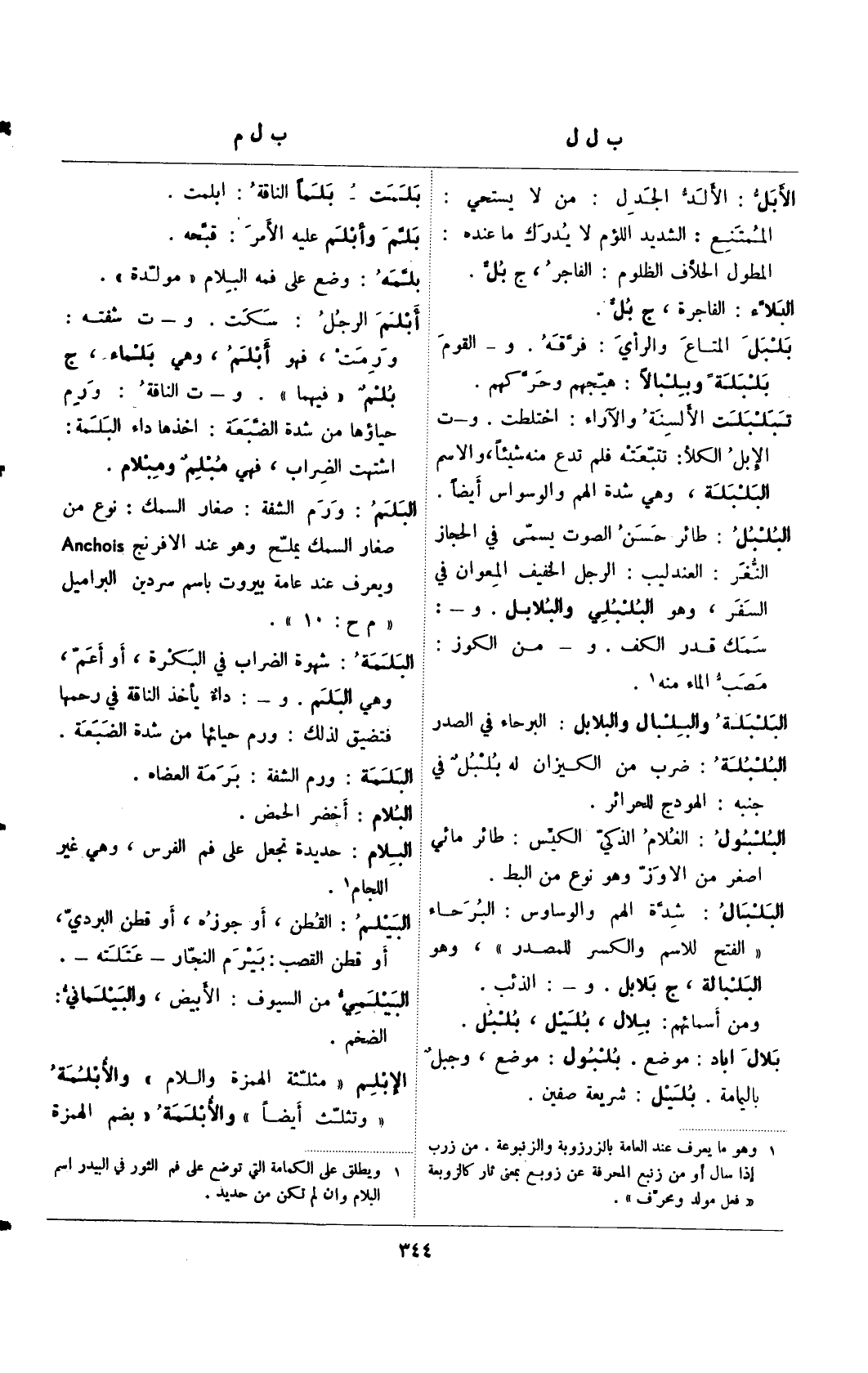 الأبل: الألد الجدل: من لا يستحي: الممتنع: الشديد اللؤم لا يدرك ما عنده: المطول الحلاف الظلوم: الفاجر، ج بل.