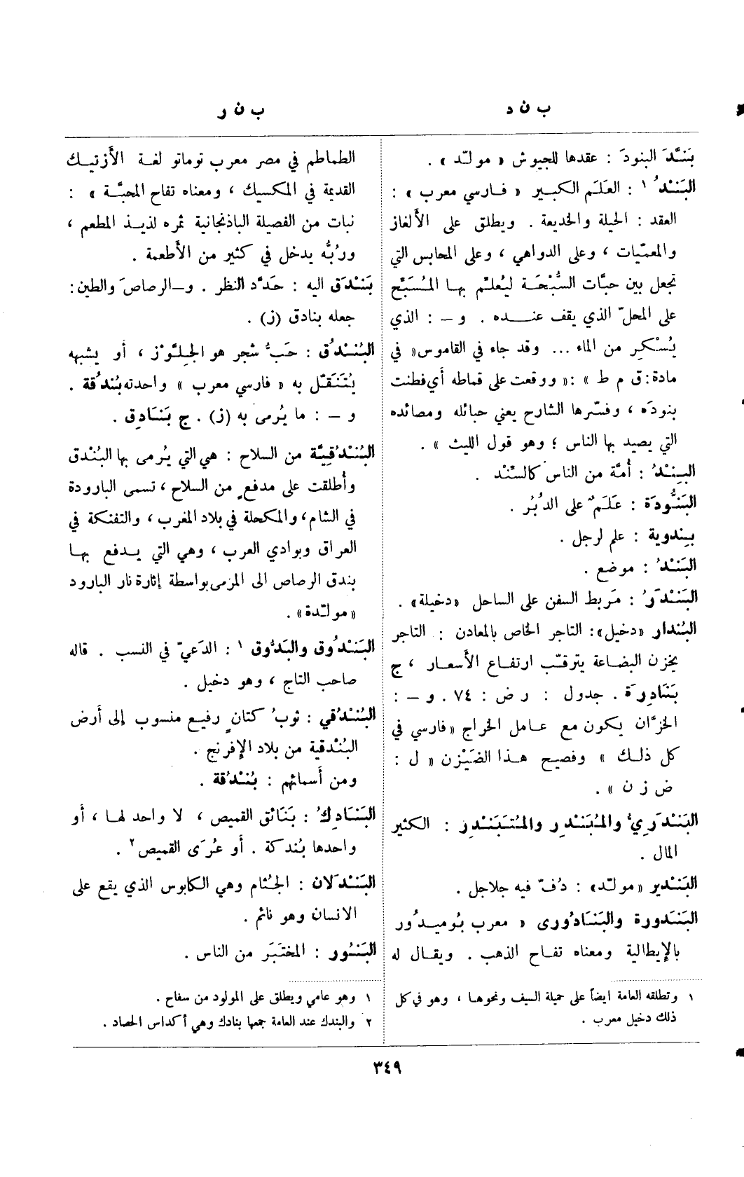 البندار "دخيل": التاجر الخاص بالمعادن: التاجر يخزن البضاعة يترقب ارتفاع الأسعار، ج بنادرة. جدول: ر ض: 74. و-: الخزان يكون مع عامل الخراج "فارسي في كل ذلك" وفصيح هذا الضيزن "ل: ض ز ن".