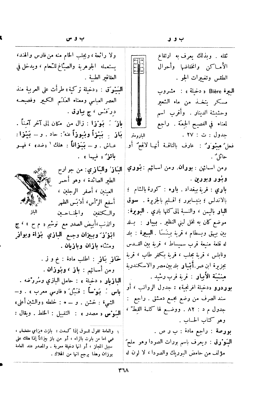 (¬1) والعامة تقول للسوق إذا كسدت: بازت "بزاي مفخمة" فهي اما من بارت بالراء، أو من باز بيزانا إذا هلك على سبيل المجاز. أو أنها دخيلة معربة. والمصدر عند العامة بوزان وهذا يرجح أنها من الهلاك.