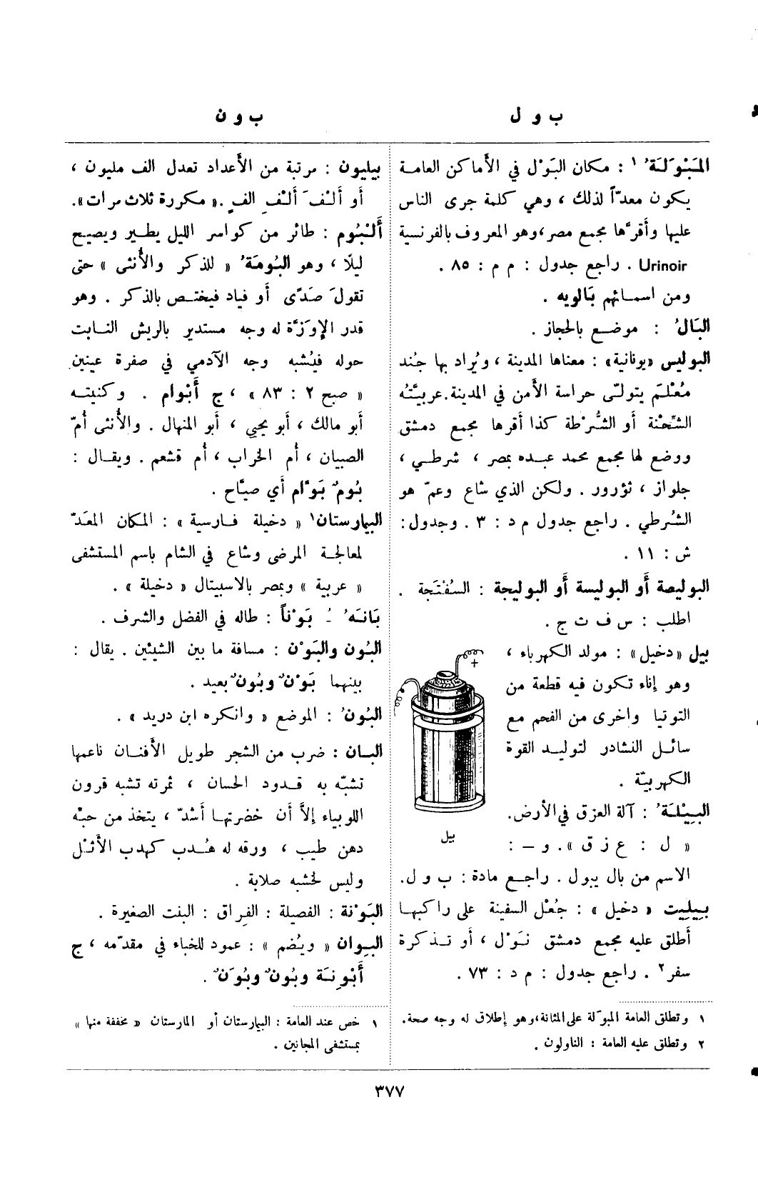البوليس "يونانية": معناها المدينة، ويراد بها جند معلم يتولى حراسة الأمن في المدينة. عربيته الشحنة أو الشرطة كذا أقرها مجمع دمشق ووضع لها مجمع محمد عبده بمصر، شرطي، جلواز، ثؤرور. ولكن الذي شاع وعم هو الشرطي. راجع جدول م د: 3. وجدول: ش: 11.