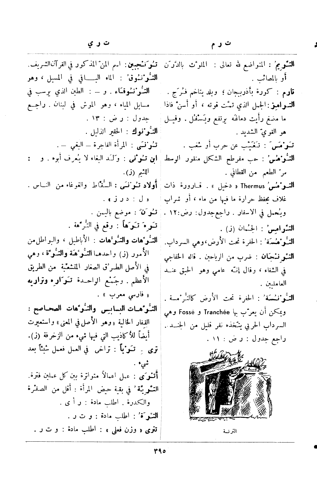 ويمكن أن يعرب بها Trancgee و Fosse وهي السرداب الحربي يتخذه نفر قليل من الجند.