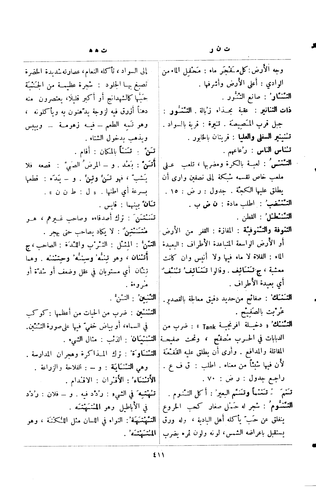 التنك "دخيلة إفرنجية Tank": ضرب من الدبابات في الحرب مصفح، وتحت صفيحة المقاتلة والمدافع. وأرى أن يطلق عليه القفعة لأن فيها شيئًا من معناه. أطلب: ق ف ع. راجع جدول: ر ض: 70.