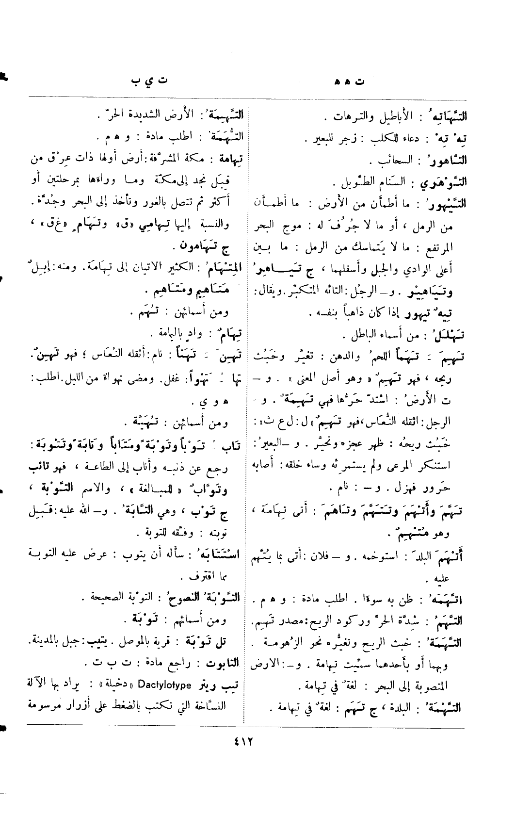 المتهام: الكثير الاتبان إلى تهامة. ومنه: إبل متاهم ومتاهم.