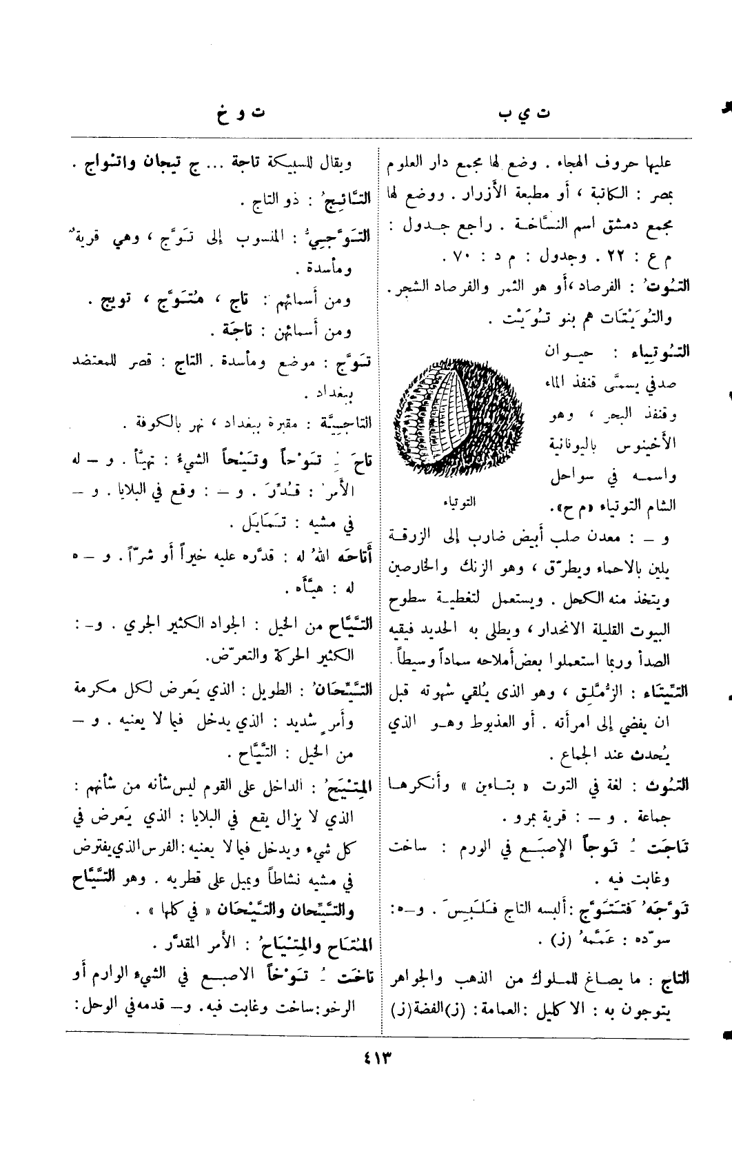 التوتياء: حيوان صدفي يسمى قنفذ الماء وقنفذ البحر، وهو الأخينوس باليونانية واسمه في سواحل الشام التوتياء "م ح".