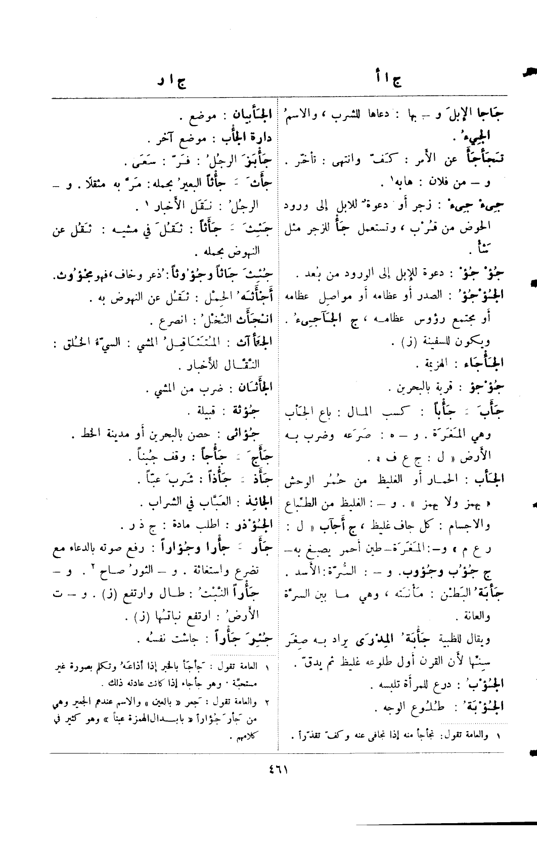 (¬2) العامة تقول: جأجأ بالحبر إذا أذاعه وتكلم بصورة غير مستحبة. وهو جأجاء إذا كانت عادته ذلك.