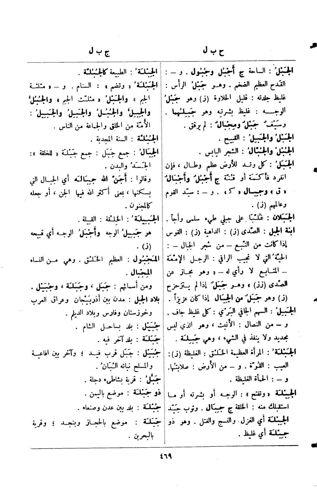الجبلة "وتضم": السنام. و- "مثلثة الجيم" والجبل "مثلث الجيم" والجبل والجبل والجبل والجبل والجبيل: الأمة من الخلق والجماعة من الناس.