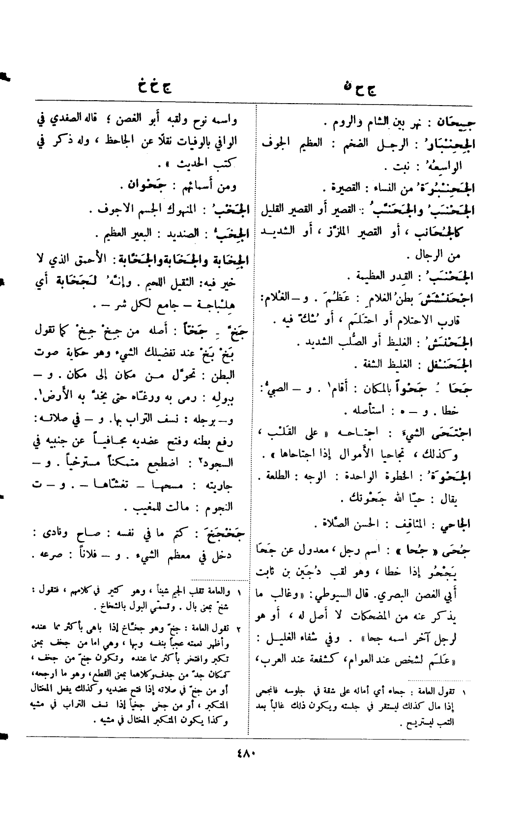 (¬3) تقول العامة: جخ وهو جخاخ إذا باهي بأكثر مما عنده وأظهر نعمته عجبا بنفسه وبها، وهي أما من جخف بمعنى تكبر وافتخر بأكثر مما عنده وتكون جخ من جخف، كمكان جد من جدف وكلاهما بمعنى القطع، وهو ما ارجحه، أو من جخ في صلاته إذا فتح عضديه وكذلك يفعل المختال المتكبر، أو من جخى جخيا إذا نسف التراب في مشيه وكذا يكون المتكبر المختال في مشيه.