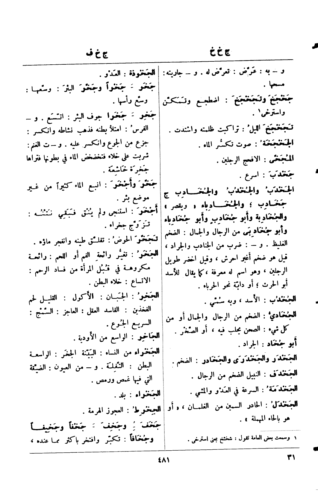 الجخدل: الحادر السمين من الغلمان، "أو هو بالحاء المهملة".