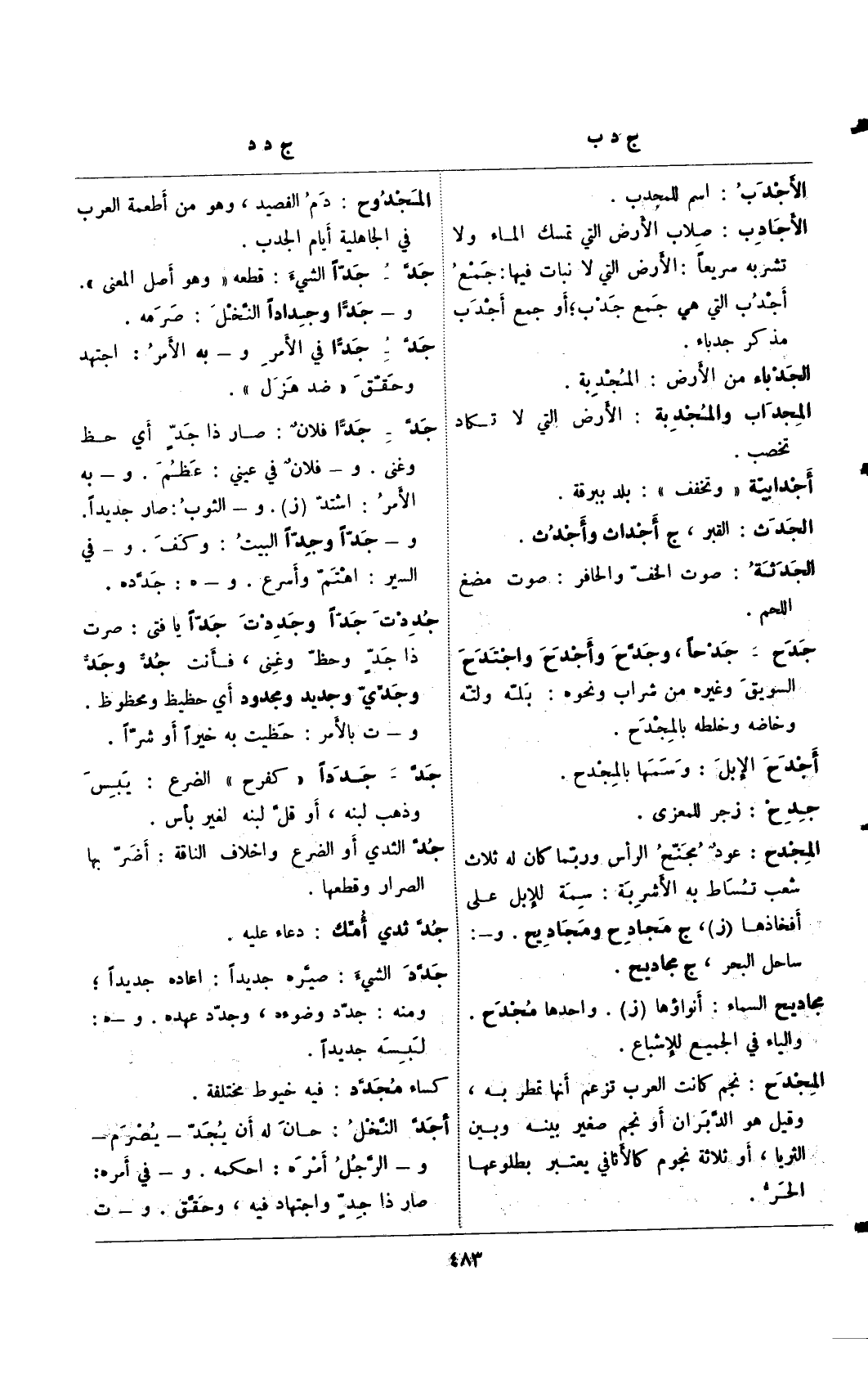 جد جدا فلان: صار ذا جد أي حظ وغنى. و- فلان في عيني: عظم. و- به الأمر: اشتد (ز). و- الثوب: صار جديدا. و- جدا وجدا البيت: وكف. و- في السير: اهتم وأسرع. و- هـ: جدده.