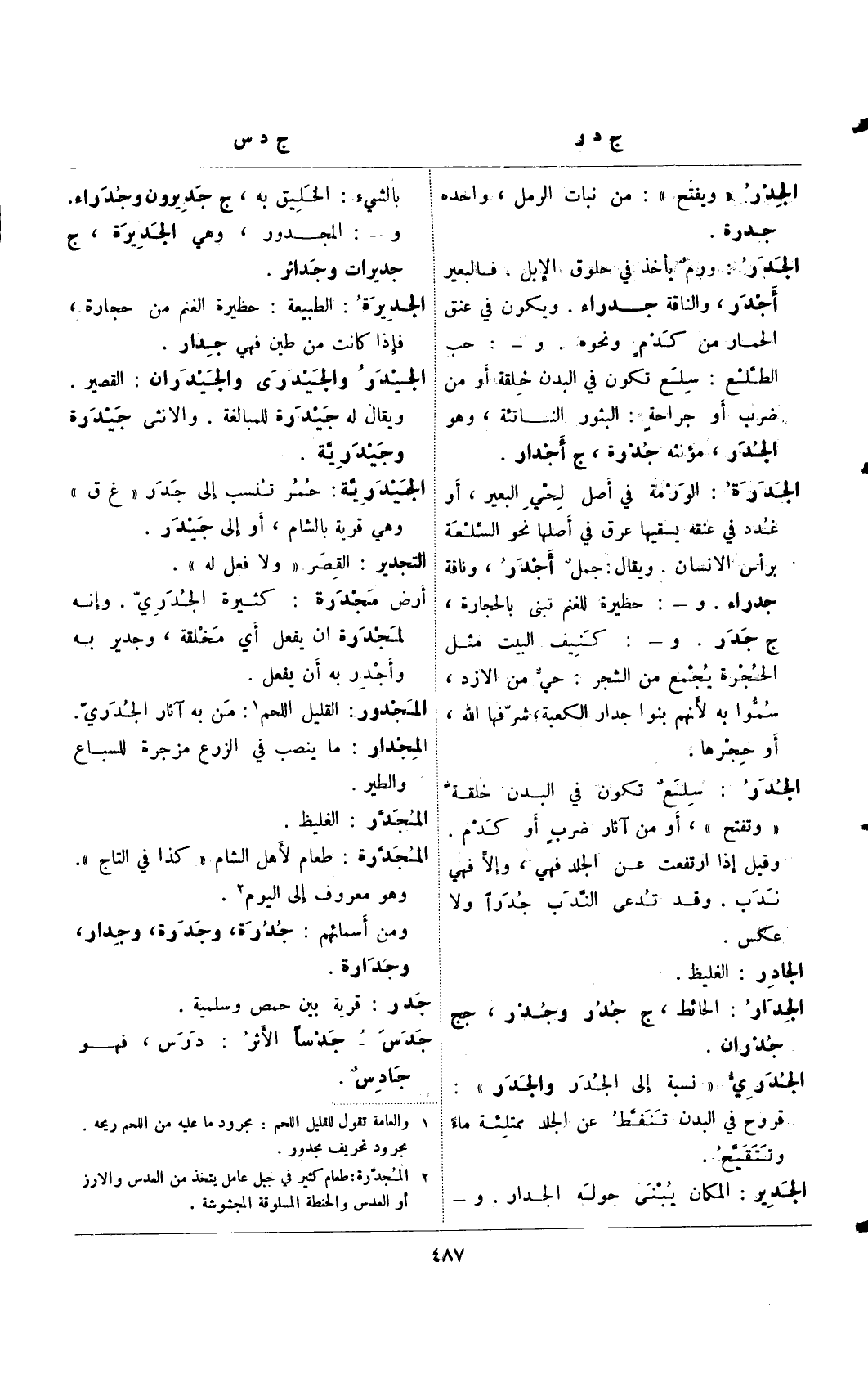 (¬1) والعامة تقول القليل اللحم: مجرود ما عليه من اللحم ريحه ومجرود تجريف مجدور.