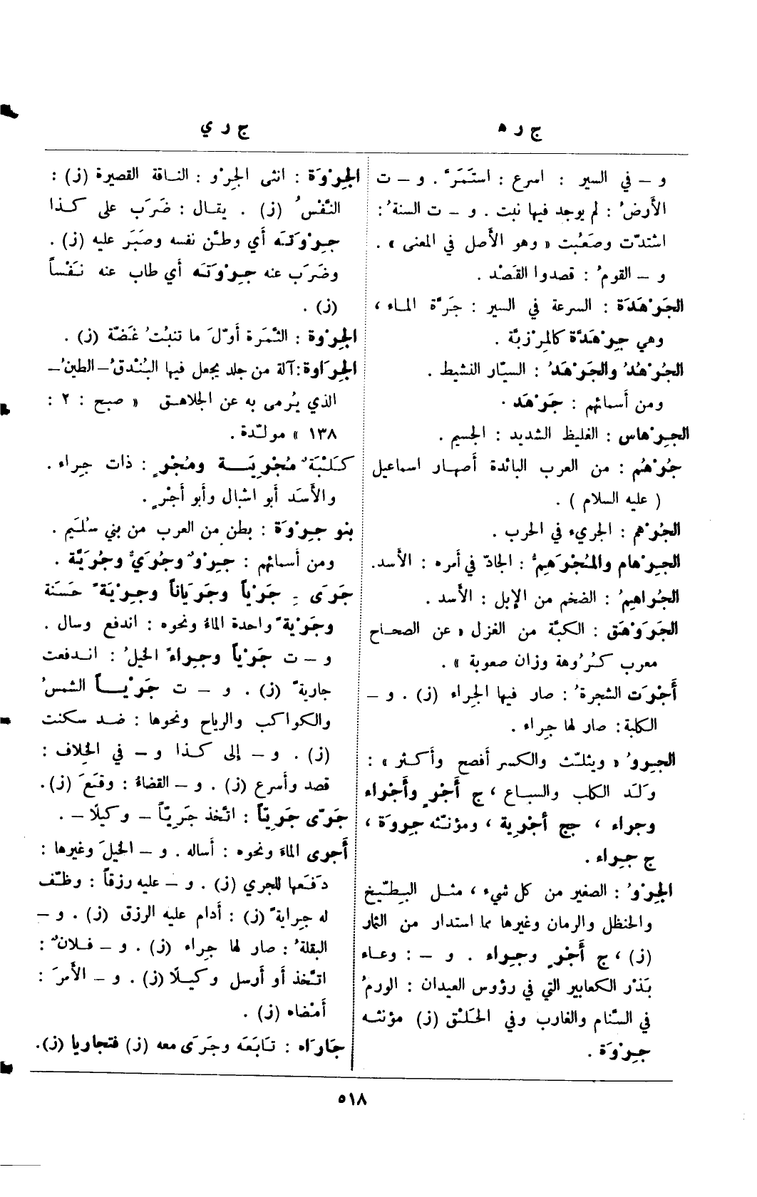 الجروة: انثى الجرو: الناقة القصيرة (ز): النفس (ز). يقال: ضرب على كذا جروته أي وطن نفسه وصبر عليه (ز). وضرب عنه جروته أي طاب عنه نفسا (ز).