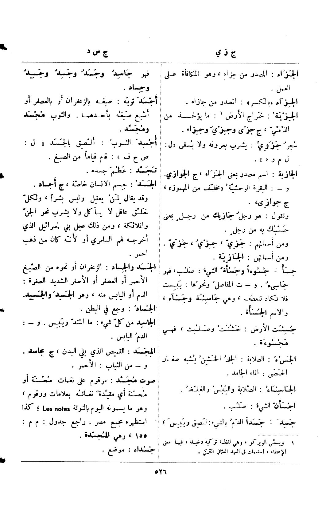 الجازية: اسم مصدر بمعنى الجزاء، ج الجوازي. و-: البقرة الوحشية"مخفف من المهموز"، ج جوازئ.