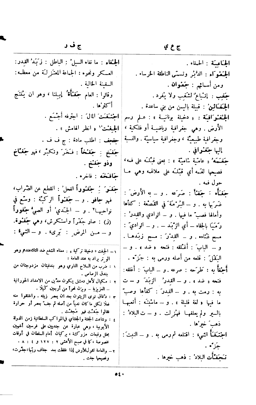 (¬2) والعامة تقول للأرض إذا غلظت بعد جفاف ريها: جفرت، وفصيحها جفت.