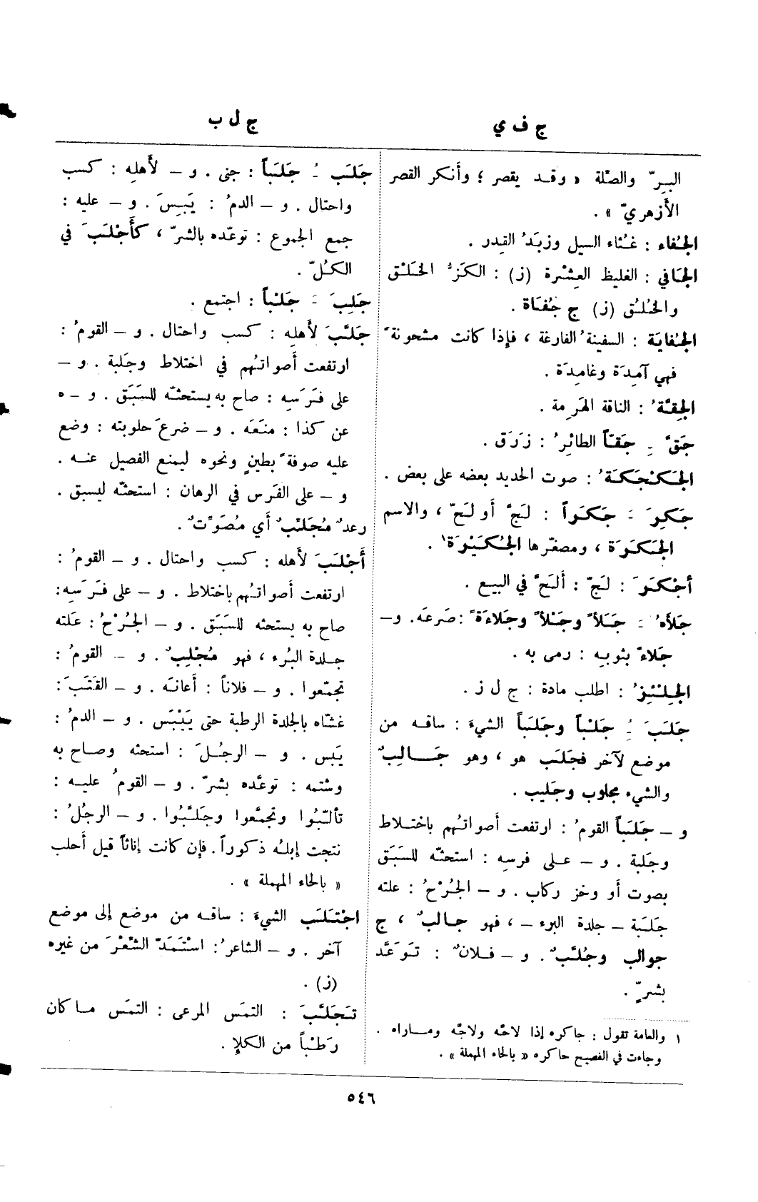 جلب – جلبًا: جنى. و- لأهله: كسب واحتال. و- الدم: يبس. و- عليه: جمع الجموع: توعده بالشر، كأجلب في الكل.