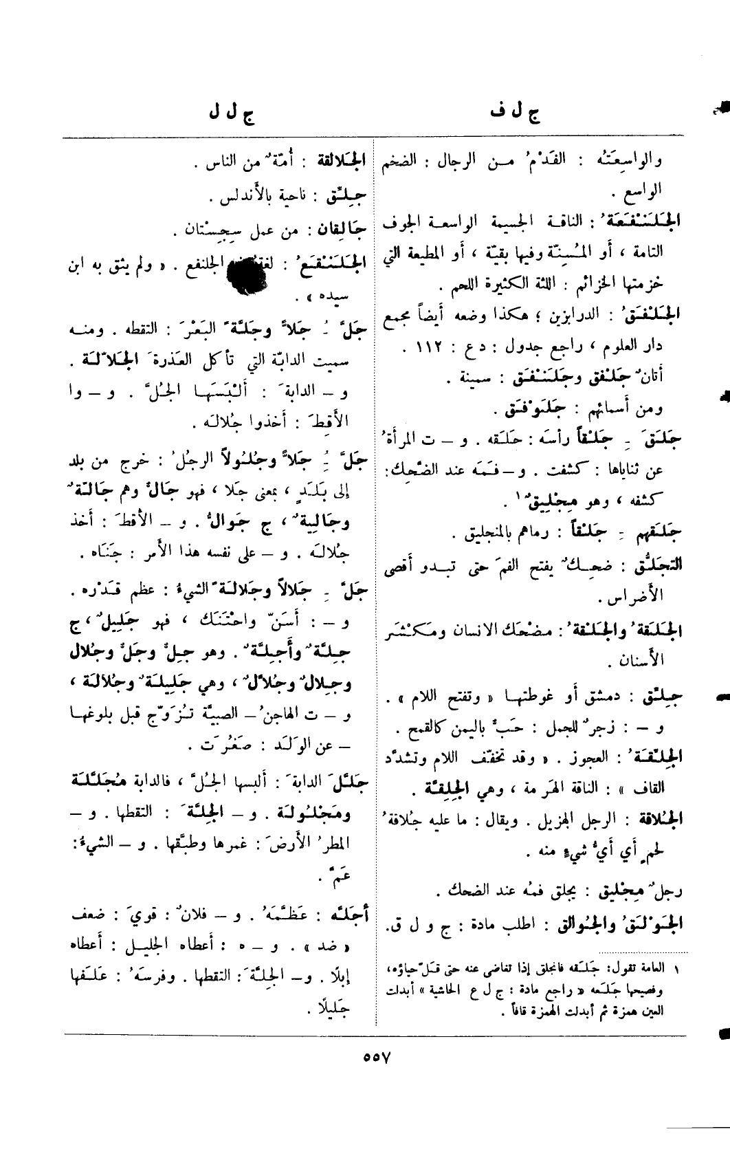 (¬1) العامة تقول: جلقة فانجلق إذا تغاضى عنه حتى قل حياؤه، وفصيحها جلعة "راجع مادة: ج ل ع الحاشية" أبدلت العين همزة ثم أبدلت الهمزة قافًا.