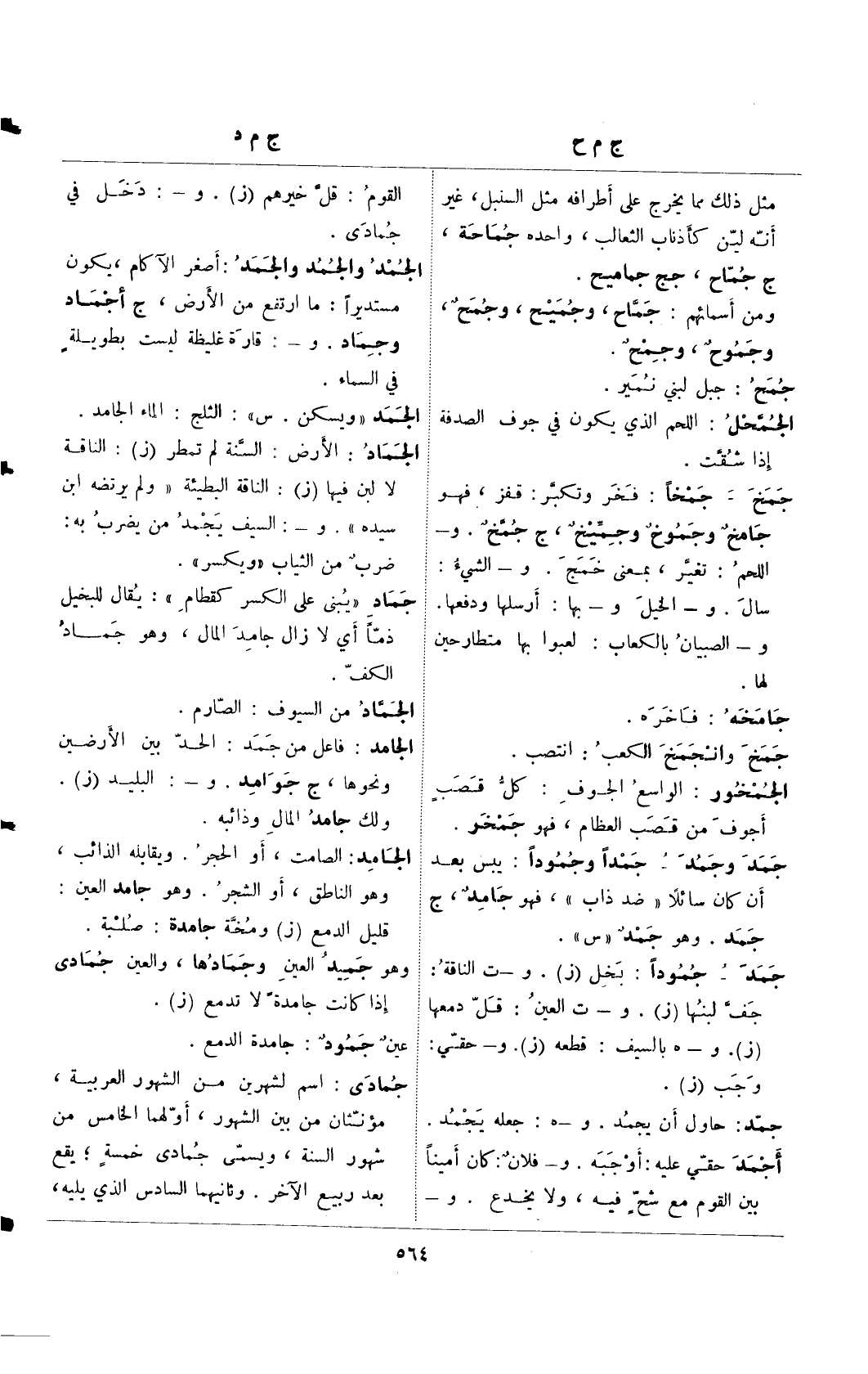جمد – جمودًا: بخل (ز). و- ت الناقة: جف لبنها (ز). و- ت العين: قل دمعها (ز). و-هـ بالسيف: قطعه (ز). و- حقي: وجب (ز).